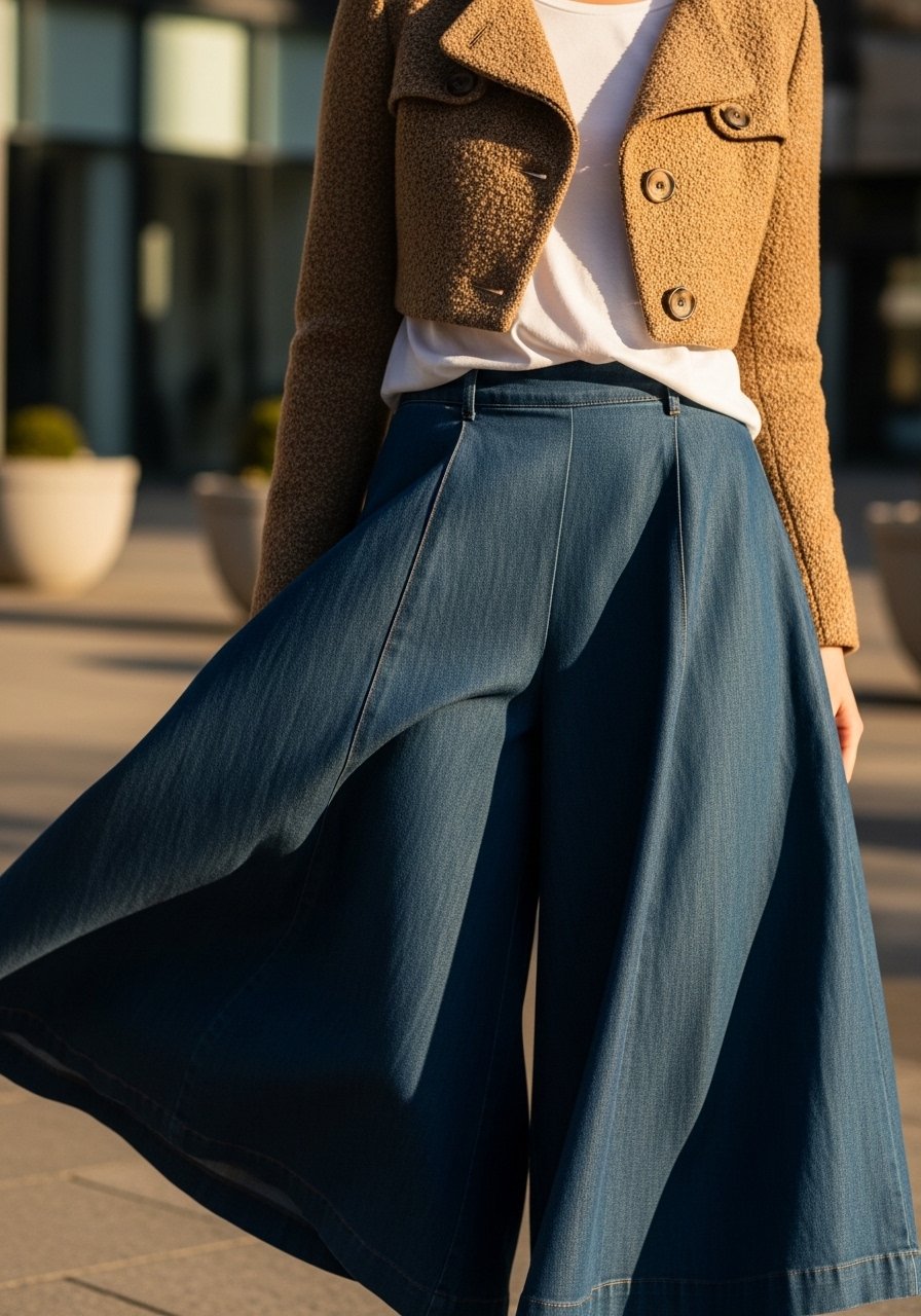 A cropped jacket balances wide leg culottes nicely. I tuck a tee in to keep a defined waist and add loafers for polish. The cropped top keeps proportions flattering. My picks are cropped-jacket-women and wide-leg-culottes. I learned this after a day out where an unbalanced top drowned the culottes.