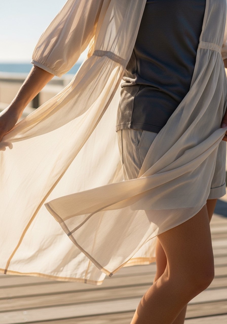A sheer duster adds drama without weight and is great over shorts and a tee. I pack a lightweight one for trips because it layers easily and photographs well. I like sheer-duster-womens with denim shorts. I once tried a heavy kimono and regretted the bulk, so keep it airy.