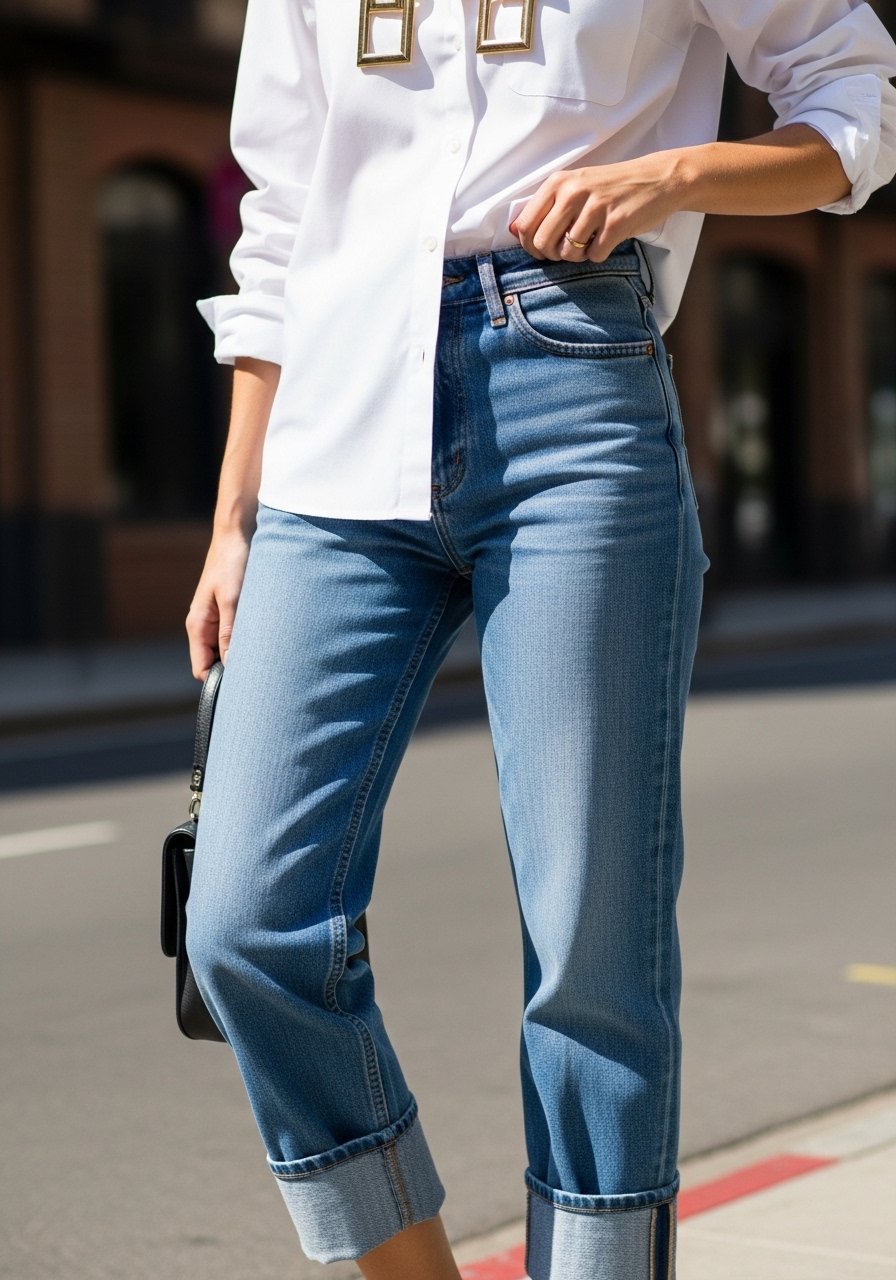 This combo is my go-to when plans are casual but I still want a bit of polish. Tuck the front of a white shirt into straight-leg-jeans, throw on leather sneakers or loafers, and pop statement earrings for instant dressing-up. I once paired this with a colorful crossbody and got compliments all day. It’s versatile, budget-friendly, and photograph-friendly.