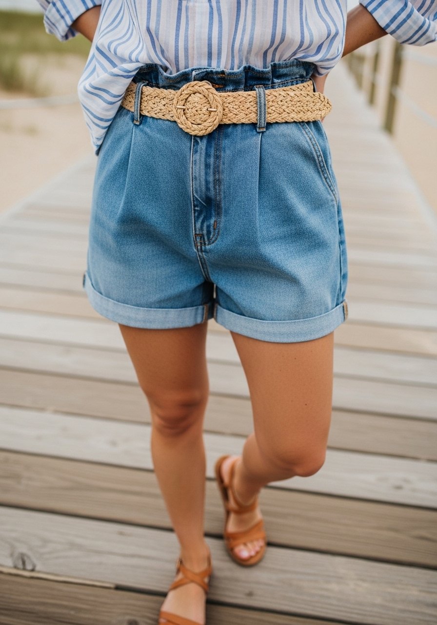 On hot days I prefer paperbag shorts because they feel elevated while still comfy. Tuck in a lightweight blouse, add flat sandals and a wide-brim hat for sun protection. I tried this outfit for a beachside lunch and kept cool without sacrificing style. It’s an unexpected pairing that feels fresh.