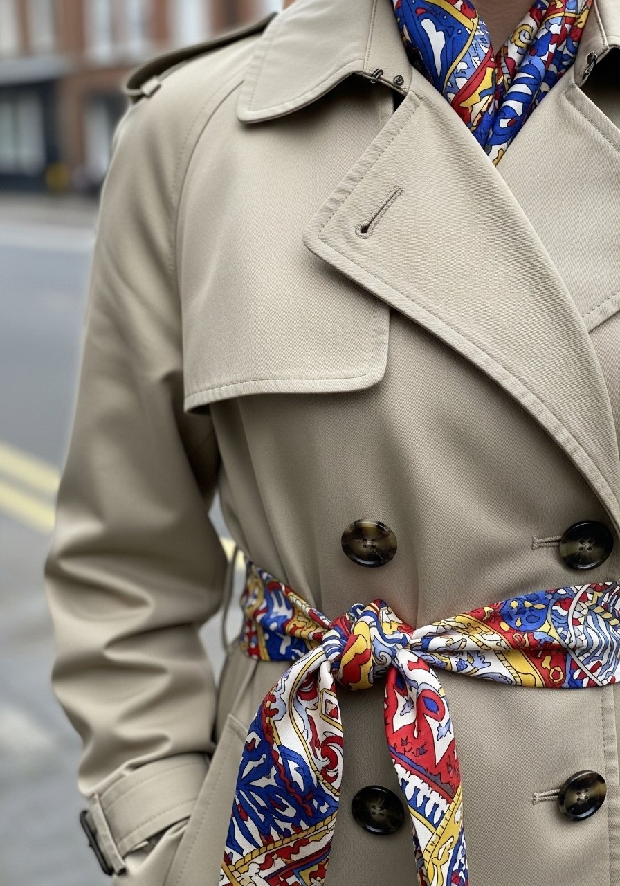 This is one of my favorite small tricks that competitors miss. Use a vintage scarf looped through belt loops or tied around a lightweight trench to add personality. It’s a low-cost upgrade that photographs beautifully. I’ve found a thrifted scarf can change the mood of an entire outfit, making basics feel curated.