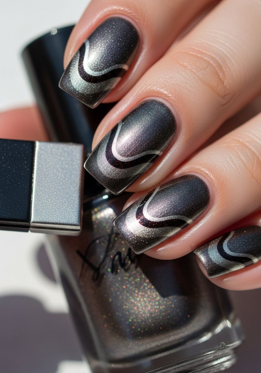 Use magnetic-nail-polish and hold the magnet over the polish in varying positions to concentrate the shimmer at one end, building a gradient. I once did this at a brunch and three people asked what gadget I used. It’s one of those small tech tricks that feels special but is actually fast.
