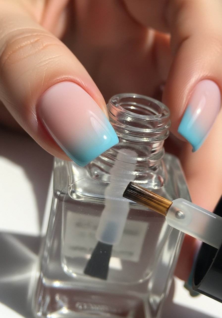 Seal Smart: For textured ombres like flocking or flakes, use a gel top coat cured under a nail-uv-led-lamp to lock everything down.