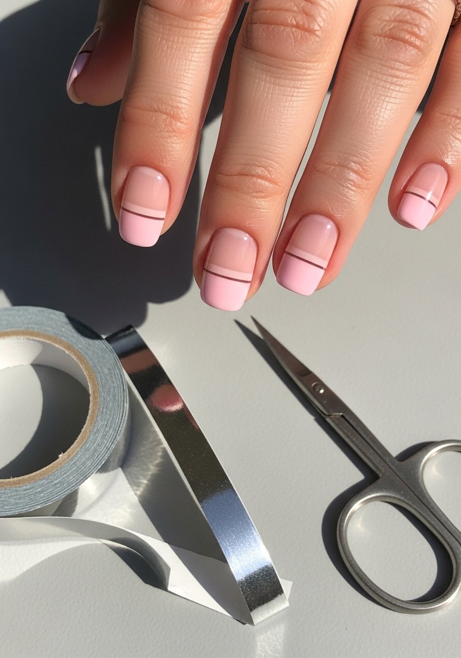 After a soft ombre, add a thin foiled or metallic strip along the center or diagonal for a quiet pop. A single line changes the vibe from casual to polished. I found clients who wanted low-key sparkle loved this because it reads small but intentional. Keep thin metallic strips on hand for quick application.