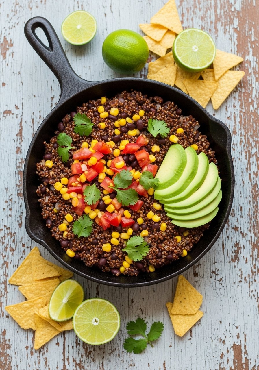 This vibrant quinoa skillet combines corn, black beans, tomatoes, and spices into a zippy, protein-packed one-pot meal. It’s bright, slightly smoky, and perfect with avocado and lime. Serve it for Meatless Monday or as a side for tacos. I use a wooden spoon to stir so the quinoa doesn’t smash.