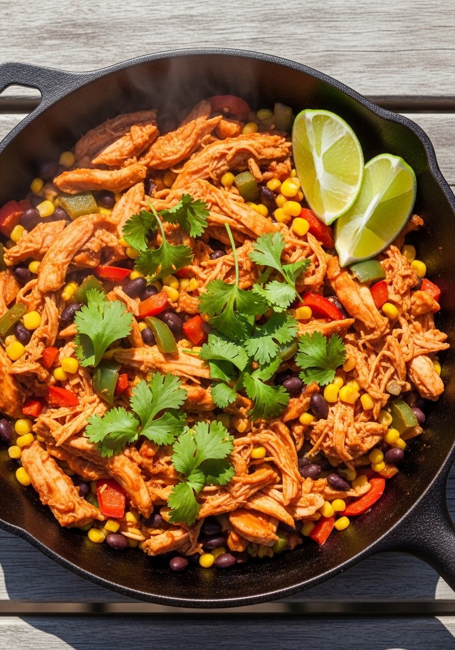 Sweet and smoky BBQ sauce simmers with chicken, corn, and peppers for a hands-off dinner that’s perfect for tortillas or rice bowls. It’s a crowd-pleaser with tangy, saucy flavor. Use tongs to shred chicken easily.