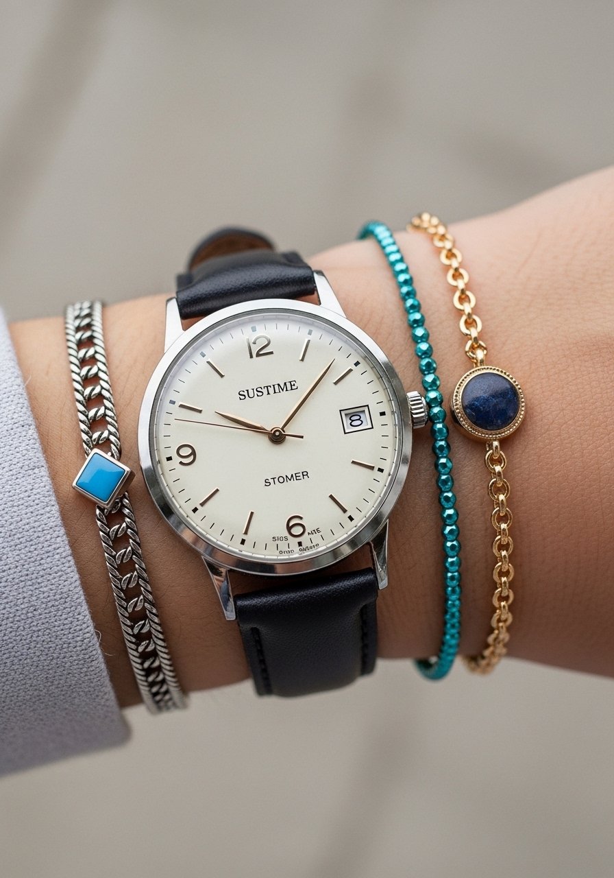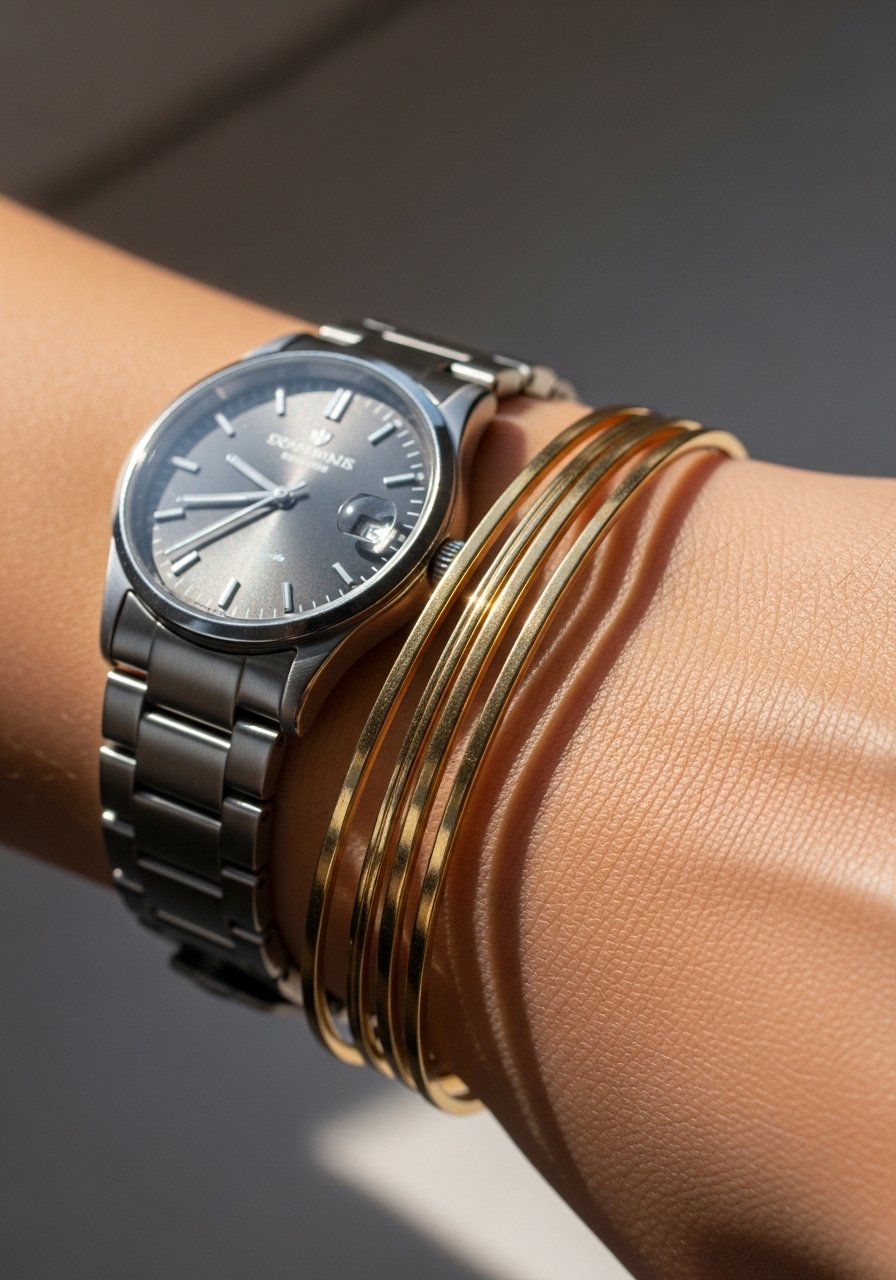 I always stack bracelets on the watch wrist and leave the other arm clean. It reads intentional, not cluttered. I mix leather, chain and a slim bangle, and it works for both work and weekends. A durable leather-watch-strap pairs well with metal bracelets.