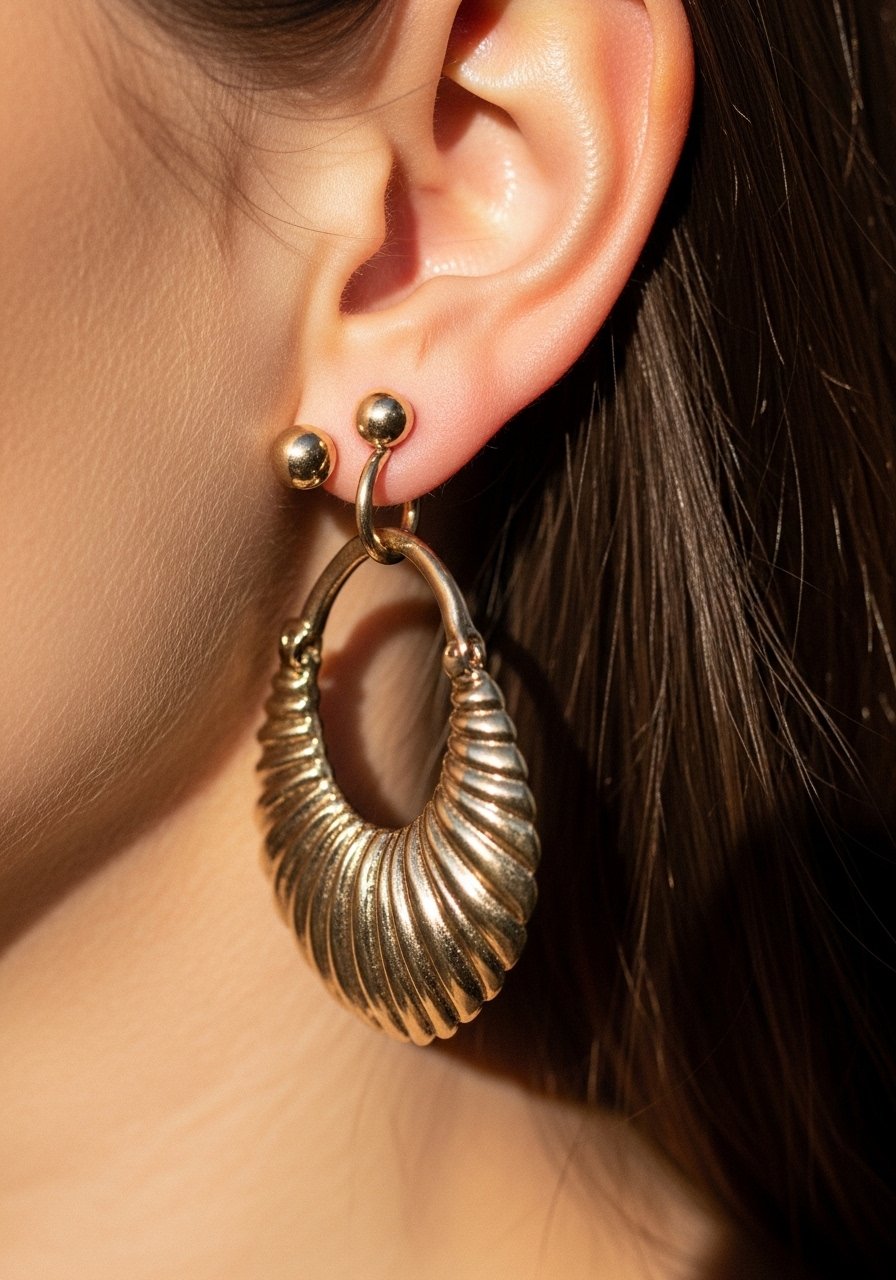 I’m into single statement earrings now, especially when my hair is up. One bold earring gives an editorial touch without overdoing it. I tried this for brunch and it made my plain sweater feel special. Pair with a minimalist necklace so the earring gets attention, or wear a gold-hoop-earrings in the other ear for balance.