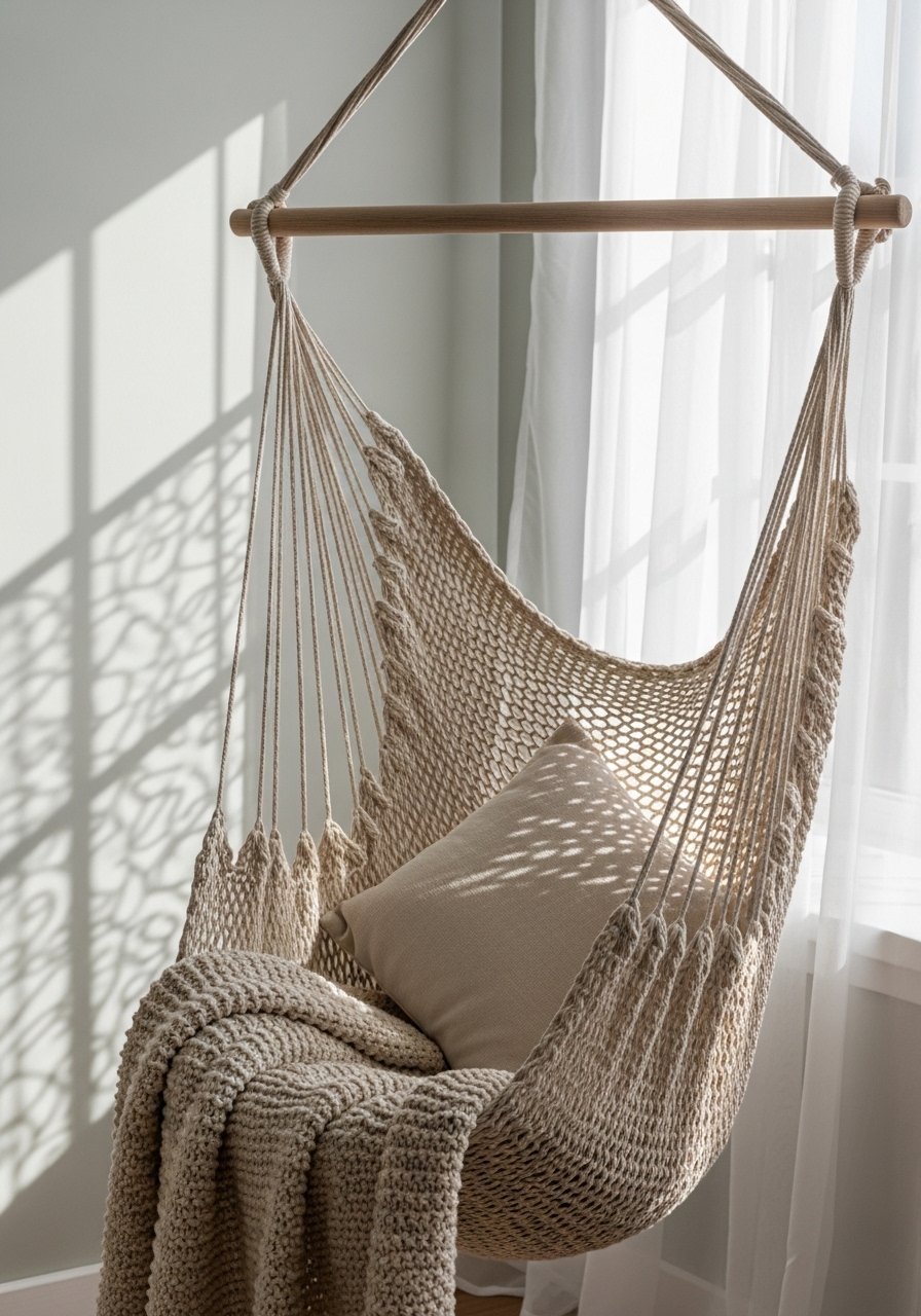 I installed a hammock chair when I had limited floor space, and it changed how I used that corner. It swings, which is oddly calming on a Tuesday night when you don’t want to think. Pair with a sheepskin-rug and a book tray. Keep hardware rated for weight and check anchors carefully.