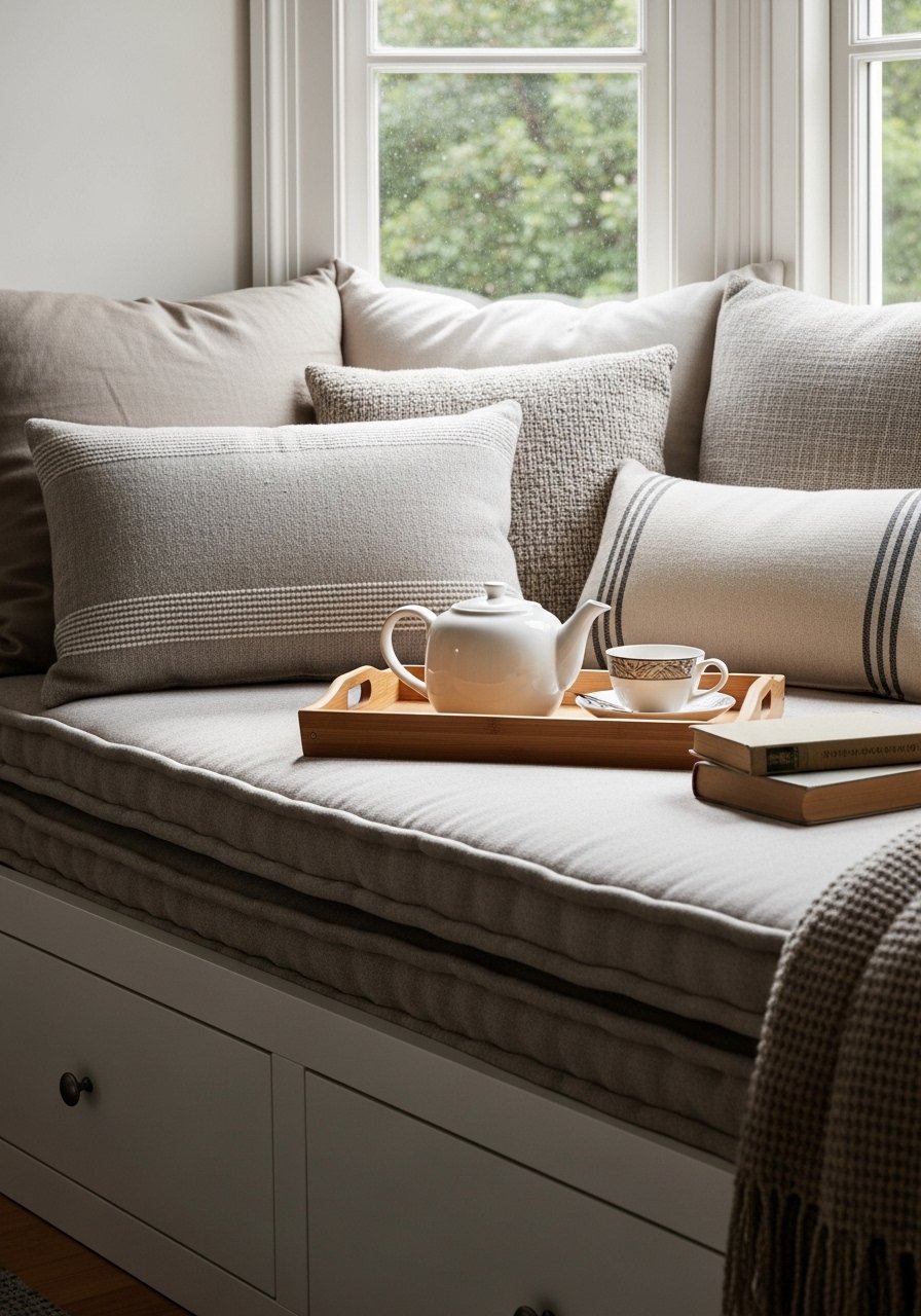 I keep a small cart to swap pillows, throws, and a few books each season, and it makes the nook feel fresh without a full overhaul. This is an easy way to keep things interesting and adapt to weather. Use labeled baskets and a simple side-table to stage seasonal items.