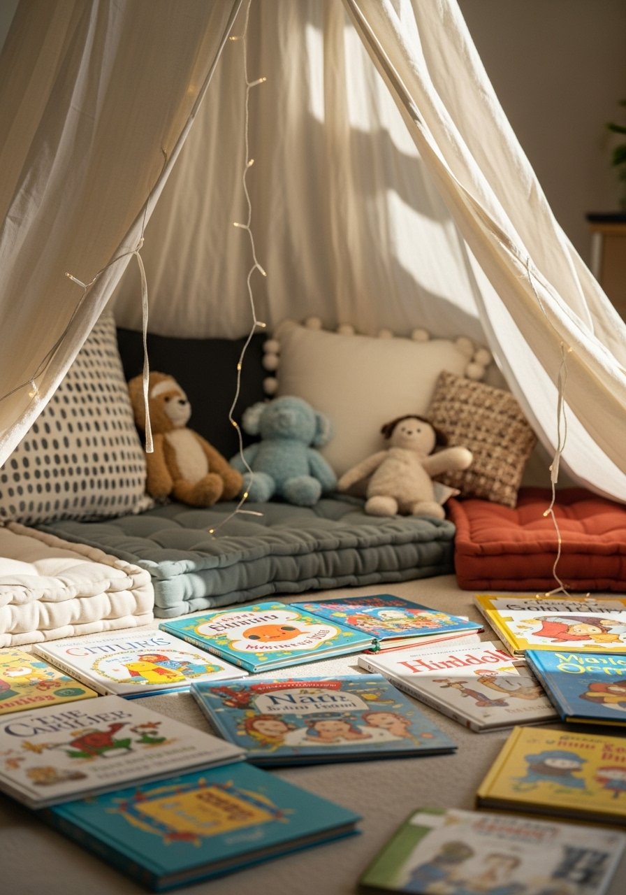 For kids, I set up a small tent over a plush rug and low cushions. It became the place for daily storytime, and trust me, morning routines improved. Use washable cushions and a low bookshelf within reach. A small plush-throw-blanket keeps it snug for chilly afternoons.