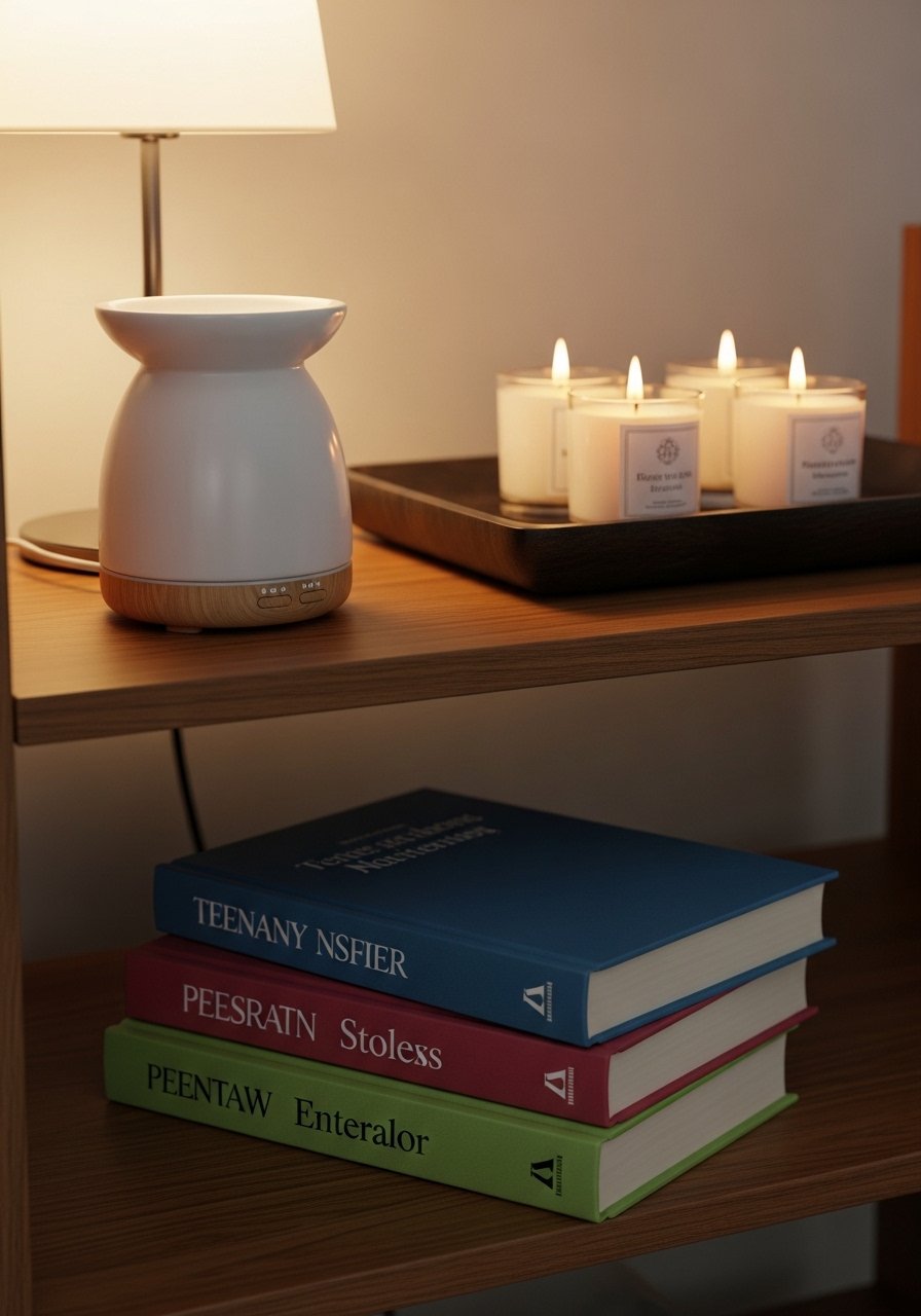 I added a tiny scent station with an essential oil diffuser and a few candles. Lavender before bed puts me into a slower rhythm and citrus in the morning perks me up. Keep scents subtle and well-ventilated. A small bluetooth-speaker lets you pair ambient sound with scent.