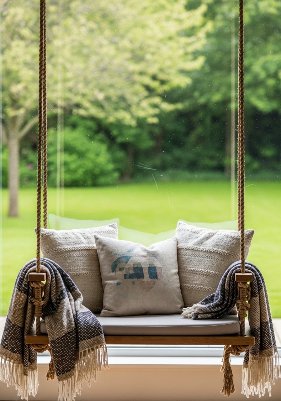 I installed a lightweight window swing anchored to joists, and it became my slow afternoon spot. It’s cozy and playful, great for summer reading. Use weatherproof hardware if near an open window, and a plush-throw-blanket for chillier days.