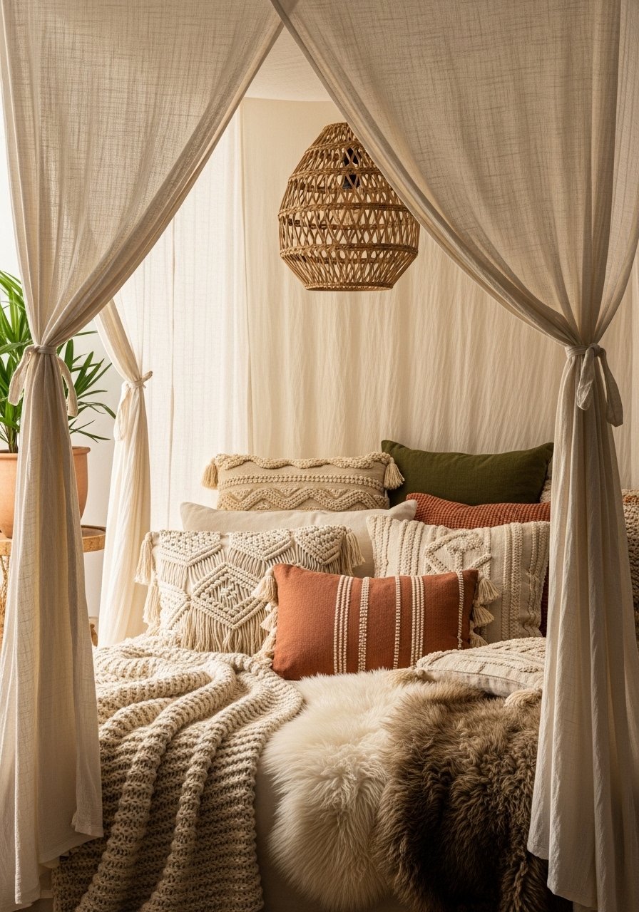 24. Bohemian Canopy Bed-Style Nook