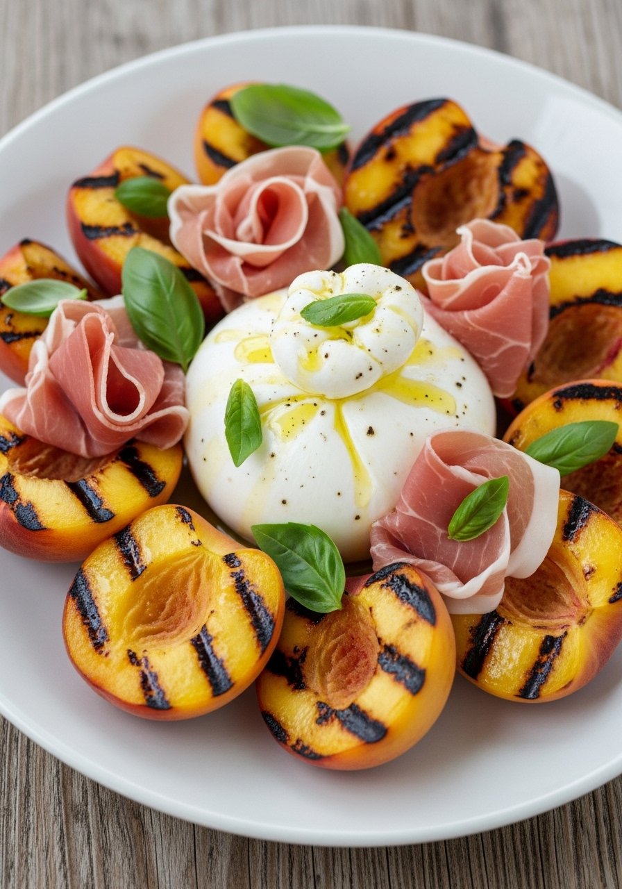 Charred peaches bring warm caramel notes that contrast creamy burrata and salty prosciutto. Grill peach halves 2-3 minutes per side, slice and layer with burrata and mint. Finish with a pinch of flaky salt and a tiny drizzle of balsamic-glaze. I serve this when I want something that feels special but takes under 20 minutes.