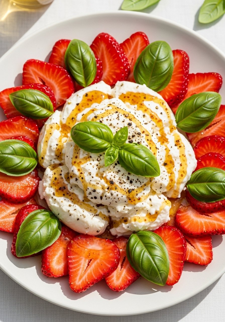 Sweet strawberries plus sweet-savory honey-mustard and creamy burrata is a contrast game that works every time. Slice strawberries, tear burrata, toss with basil and a quick dressing (Dijon, honey, lemon, olive oil). I keep local honey on hand like raw-honey for brighter dressing. Guests tend to take seconds when this shows up.