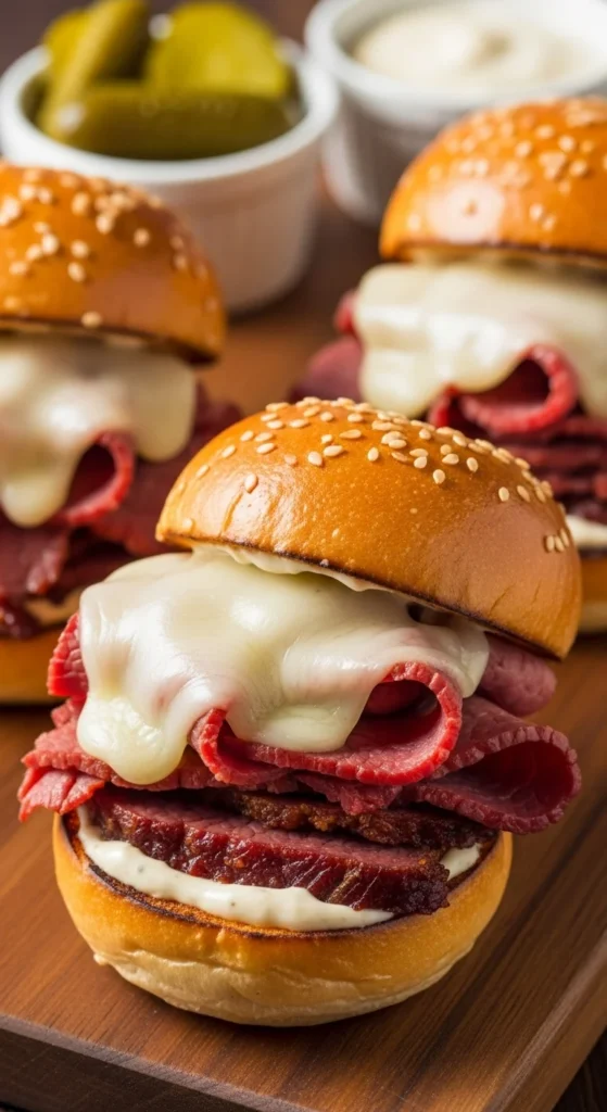 Serve warm. Add pickles. Great party food. Easy to share. Crowd favorite.