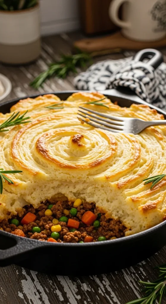 This comforting bake layers savory beef and vegetables under creamy mashed potatoes, making it a filling dinner that feeds a crowd.
