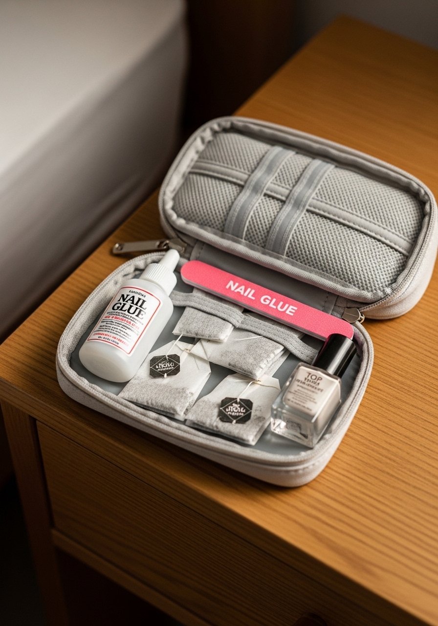 Patch with products you trust: Keep a small silk-nail-wraps pack and a tiny glue bottle for emergency repairs.
