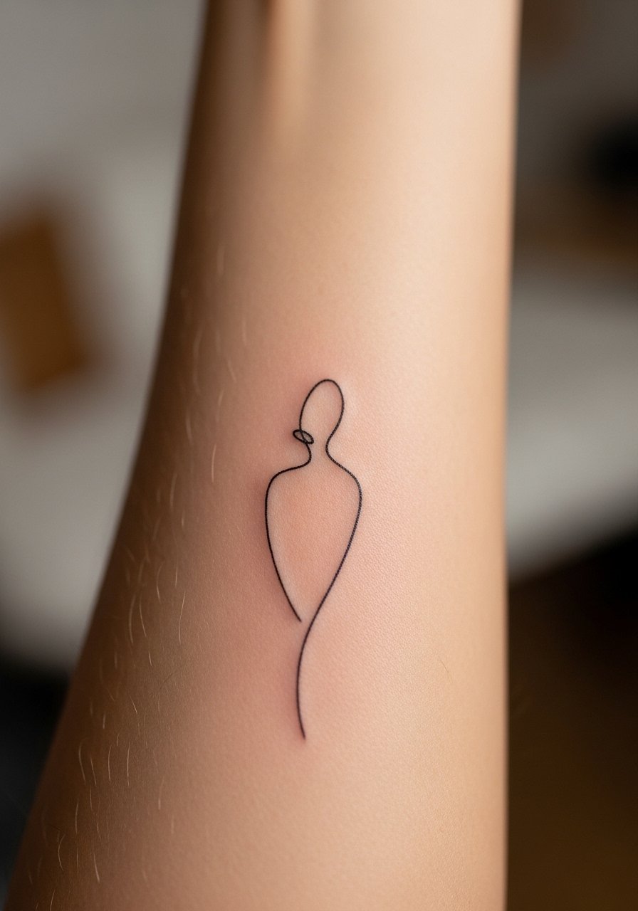 A single-line silhouette captures a face or pet outline with surprising emotion. I tell clients it’s about gesture more than detail — find an artist who excels in confident, uninterrupted strokes. Keep size moderate (2–3 inches) to preserve line integrity and consider sterile-tattoo-needles as a reminder to choose a clean, pro studio. These pieces age well when lines aren’t too hair-fine.