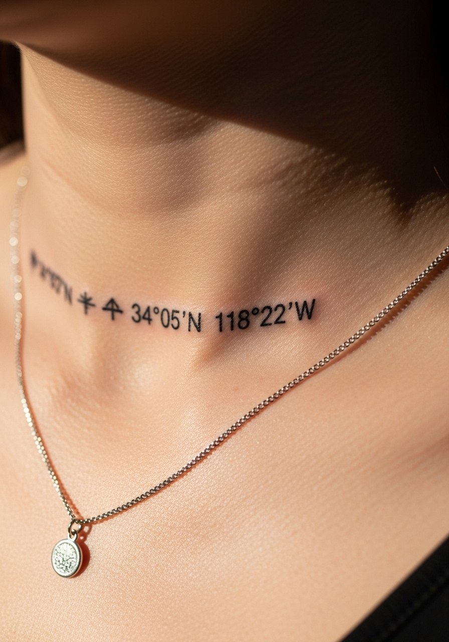 Coordinates are discreet and deeply personal. I tell clients to double-check GPS formatting and choose a font with clear spacing — tiny numerals can blur if too thin. A simple sealing ointment like fragrance-free-salve helps early healing. This idea pairs well with a faint dot or heart marker and stays meaningful without explanation.