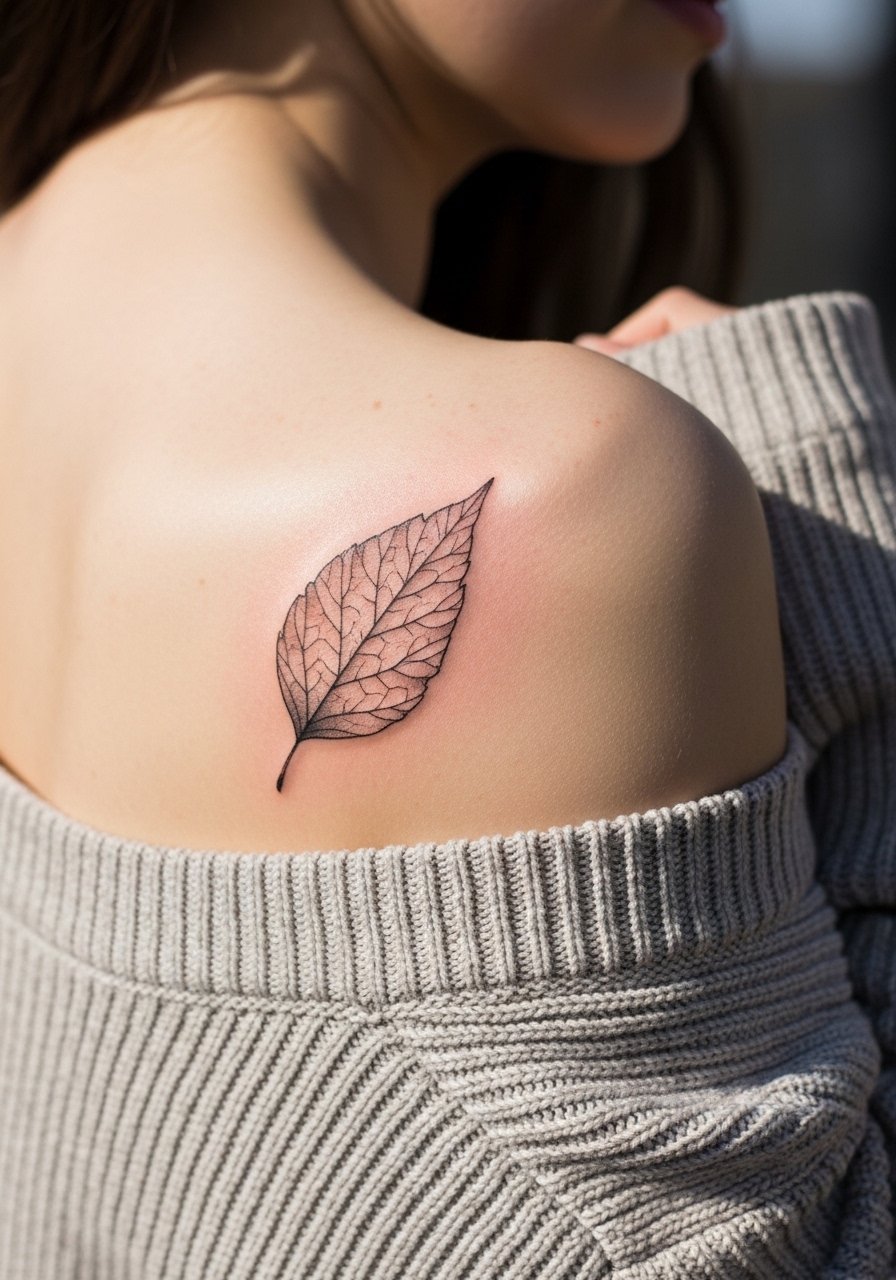 A palm-sized leaf can be both delicate and statement-making without overwhelming the canvas. I recommend slight vein work rather than heavy fill so it ages naturally. Scale around 2–3 inches works well on shoulders or ribs. Use spf-50-sunscreen on exposed areas once healed. Leaves pair well with seasonal symbolism and personal growth narratives.