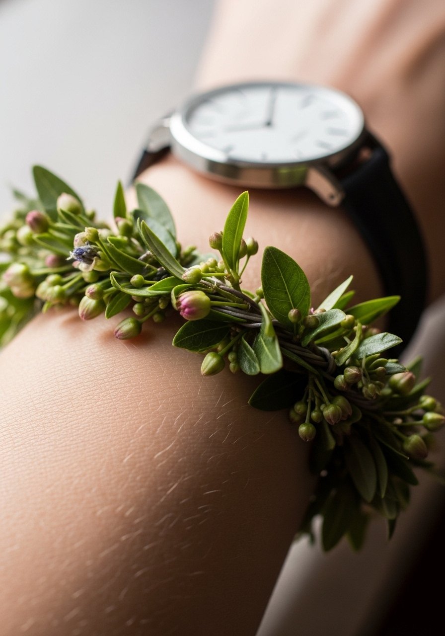 A botanical bracelet feels like jewelry and photographs beautifully. I advise leaving slight negative space between elements so the band doesn’t blur into a solid line. Expect 1–2 hours depending on wrap length, and use fragrance-free-salve in the first week. These translate well into layered designs with rings and watches.