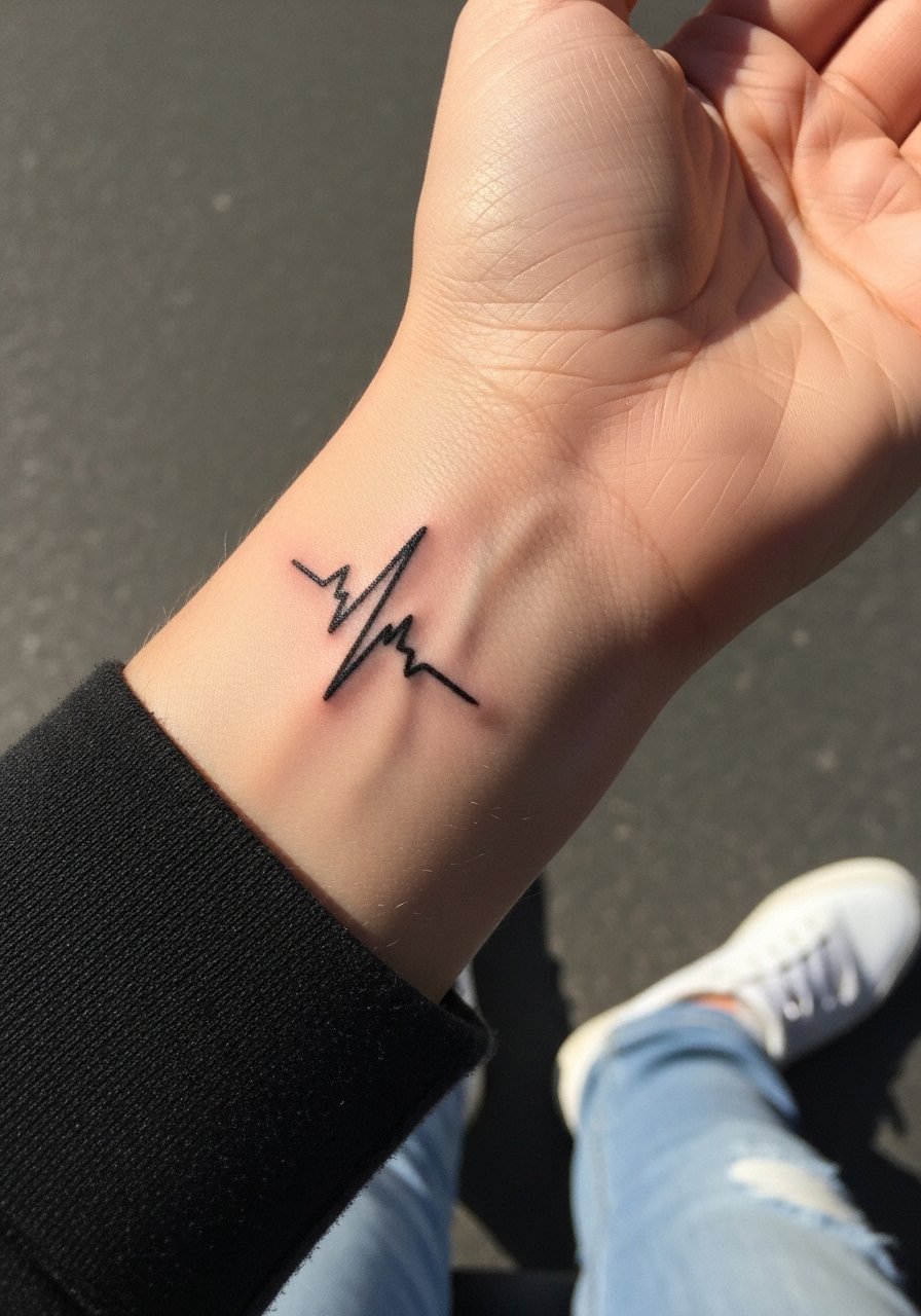 A heartbeat line is subtle yet loaded with feeling. Keep peaks bold enough to remain distinct; I usually recommend a 1–2 inch length. Avoid thin hairlines on high-motion spots. Use a mild cleanser like green-soap initially and a light moisturizer during peeling. This motif often appeals to those who want symbolic reminders of resilience.