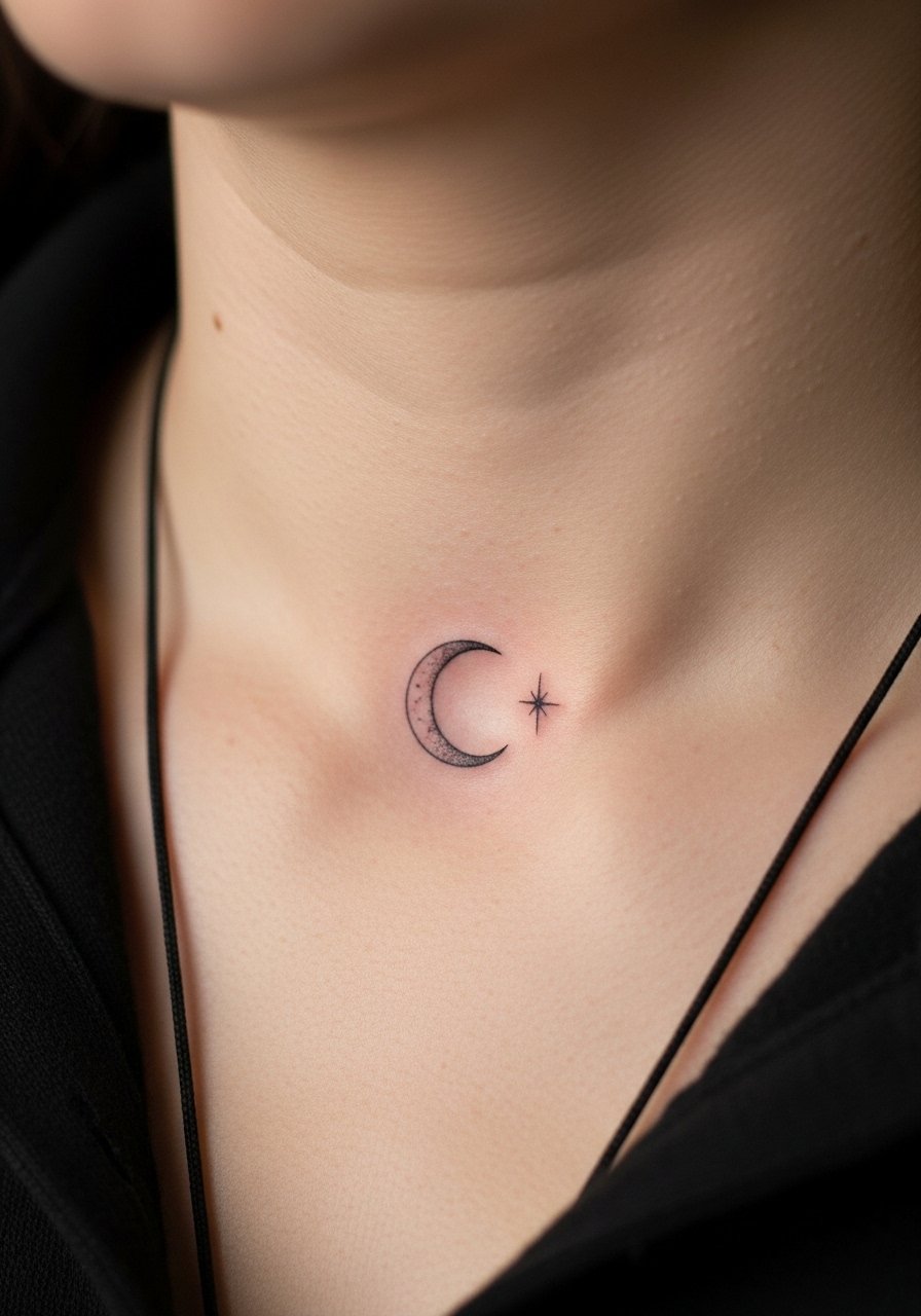Pairing a crescent with a star gives a clear narrative without crowding the area. Keep the star tiny and the crescent slightly bolder so both remain distinct. Aftercare with spf-50-sunscreen after healing keeps exposed placements bright. I’ve noticed this pairing appeals to clients wanting subtle symbolism that still photographs well.