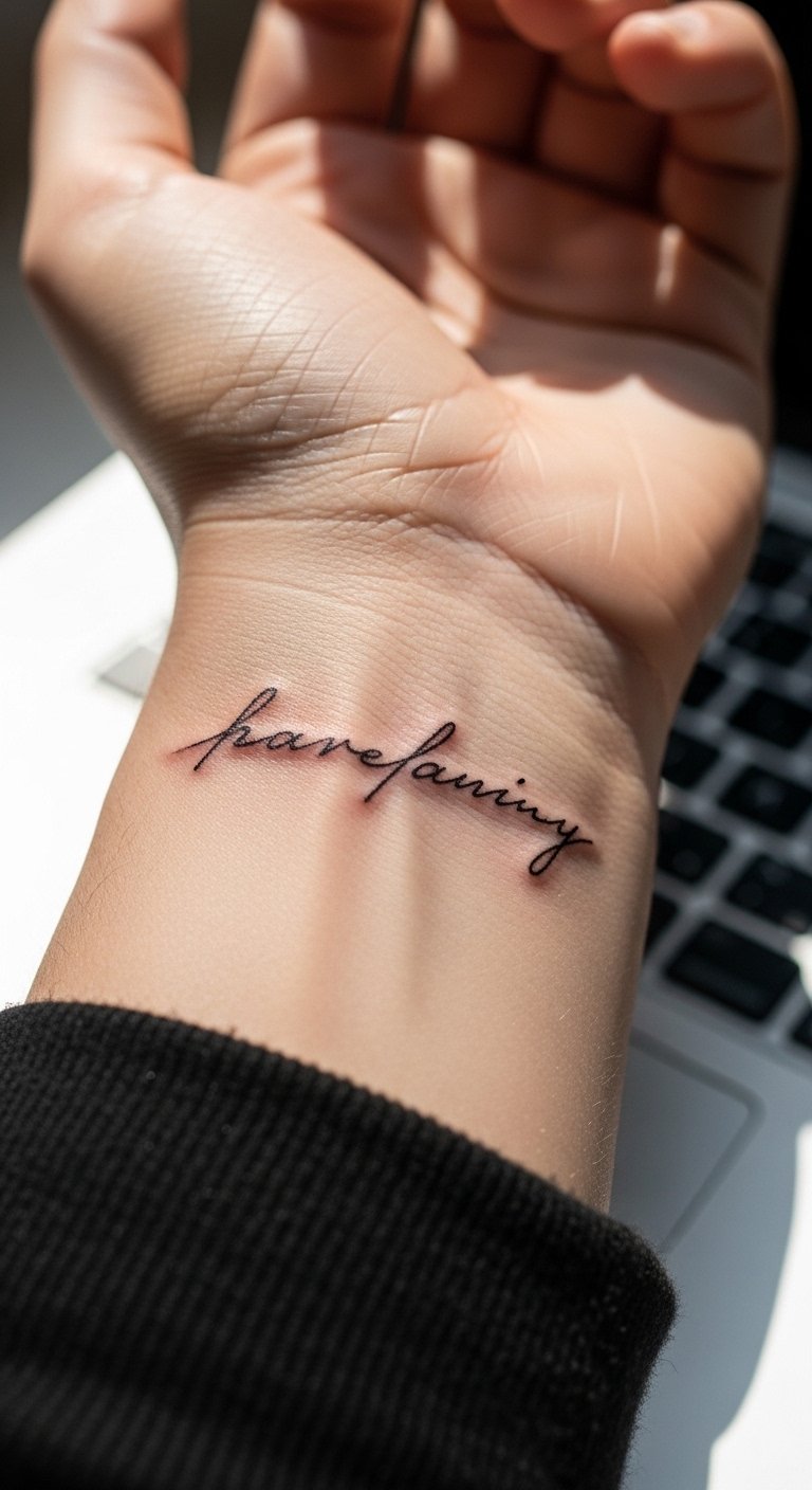 I used to get tiny quotes and had several blur because lines were placed too close. The trick: keep letters slightly larger than you think, about 1/8 inch minimum stroke. Single-needle looks elegant, but it needs a steady artist; I vet portfolios for consistent thin lines. Aftercare is straightforward, but expect faster fading if you wear bracelets or rub the area. For touch-ups I keep tattoo-aftercare-ointment on hand.
