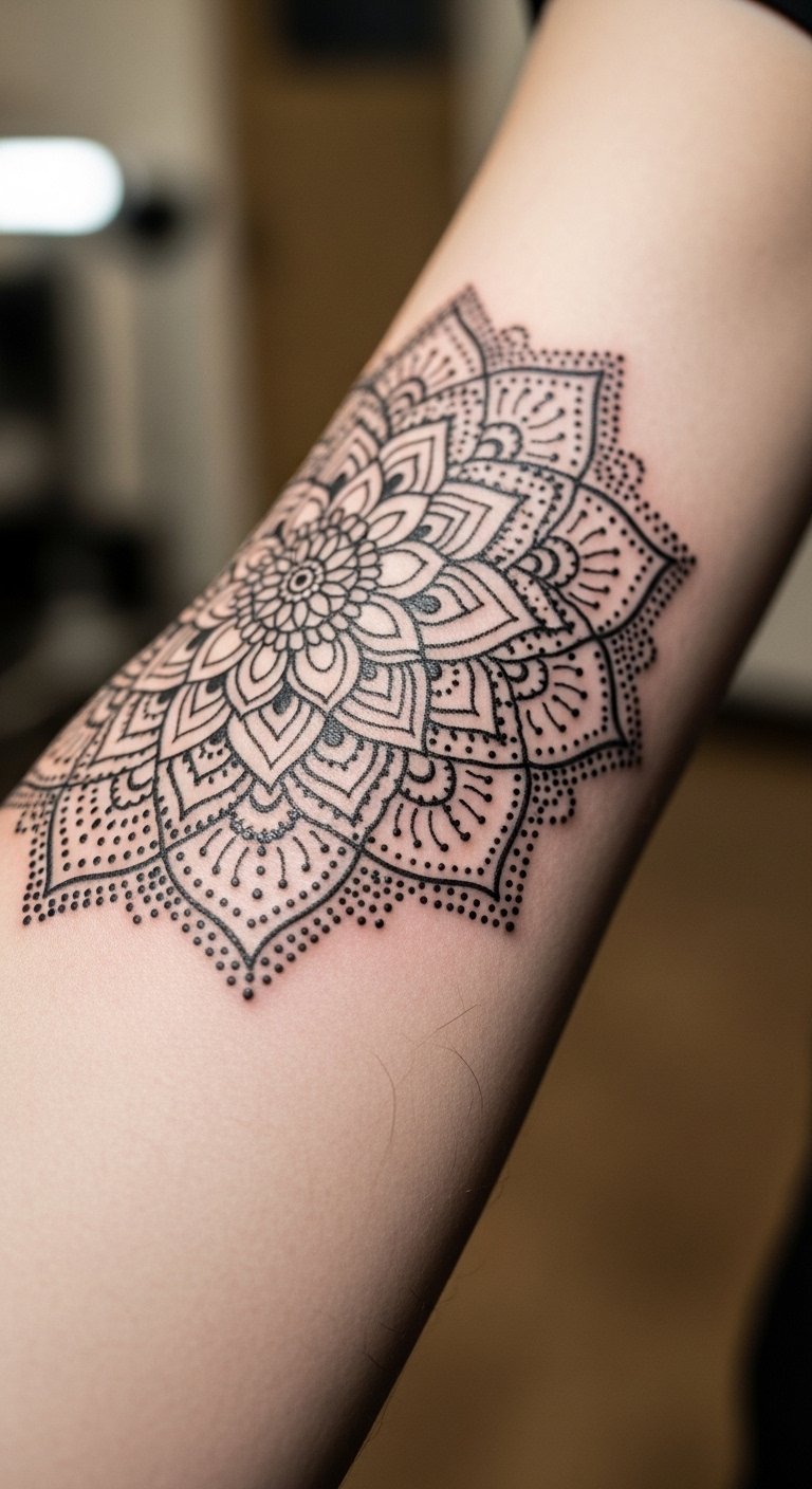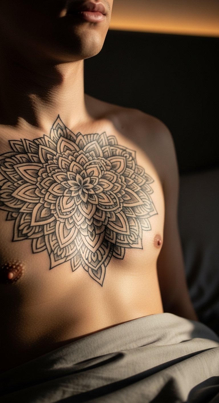 I got a sternum mandala and love how symmetry helps it age evenly, because all sides spread uniformly. Mandalas need scale so inner repeat details do not blur; I recommend 4 inches minimum. Artists who measure and transfer accurately prevent skewed centers. Healing requires protecting the center from tight clothing. Expect touch-ups on high-movement boundaries after a few years. I used symmetry-stencil-kit to plan placement.