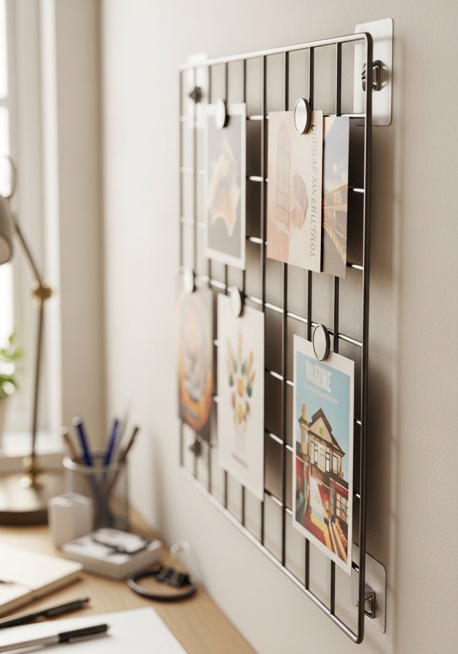I use a metal grid attached with heavy-duty adhesive strips to create a rotating art wall—magnets hold prints, kids’ art, and to-do lists. It’s especially useful over desks or in kitchens. I pair it with magnetic-poster-frames for a clean look. In my experience, this keeps walls organized and saves time swapping items during busy weeks.