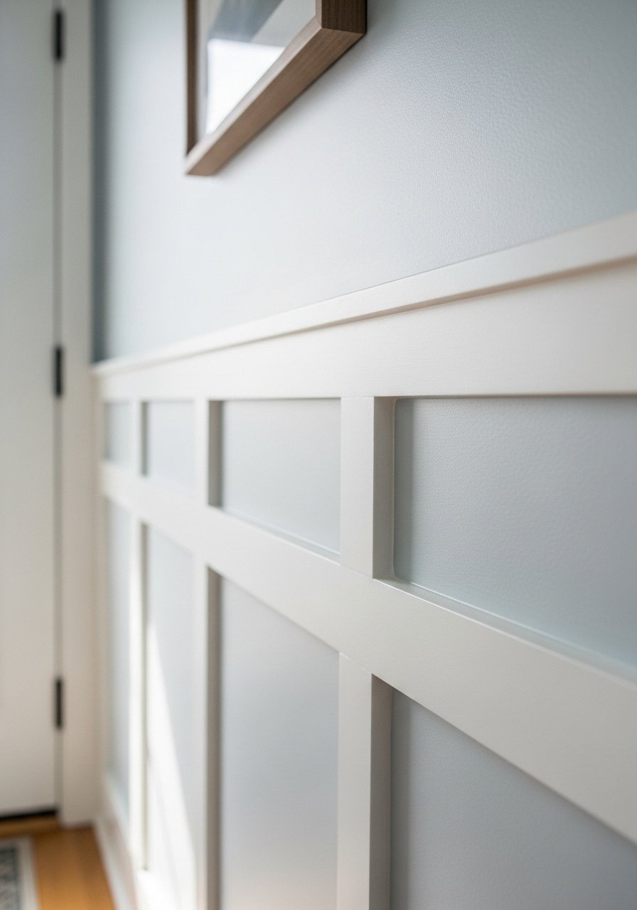 I simulate wainscoting with peel-and-stick trim strips painted over for a tailored look. It creates architectural interest without carpentry. After applying straight, I paint to match or contrast the wall. I use low-tack peel-and-stick-wall-covering trim and it holds well on smooth surfaces. Budget for two small sections is often under $80.