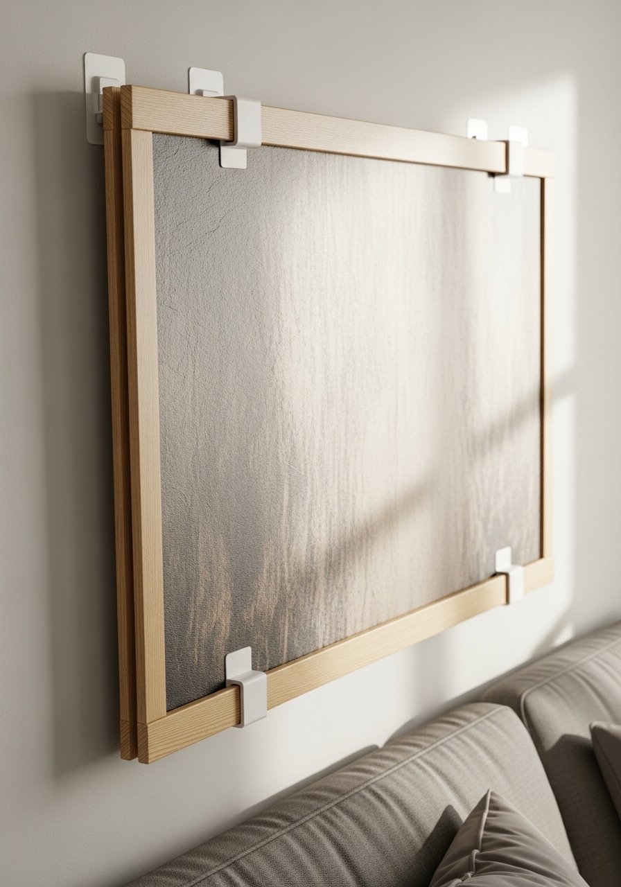I use fabric stretched over lightweight frames and attach them with Velcro strips—easy to swap and washable. It’s a soft alternative to art and adds acoustic dampening in rooms with echo. For this I use reusable-wall-putty and medium-weight cotton panels. This method cost about $25–$60 per panel depending on fabric, and it’s forgiving for renters.