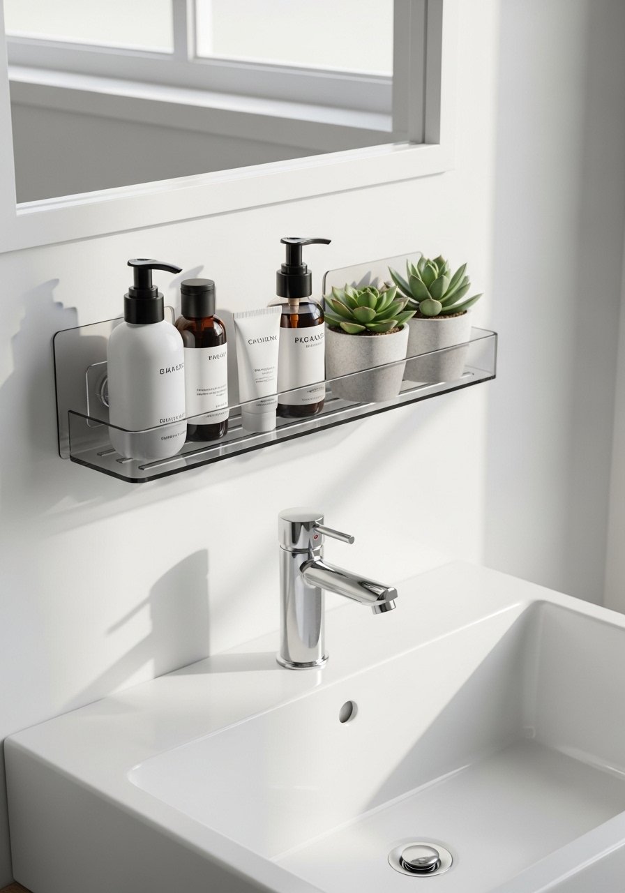 Small adhesive shelves are bathroom game-changers—store soaps, plants, and scented items without drilling. I choose corrosion-resistant materials and use removable-adhesive-hooks rated for humid spaces. This keeps counters clear and walls functional, and it’s perfect for renters who need storage but can’t alter tile.