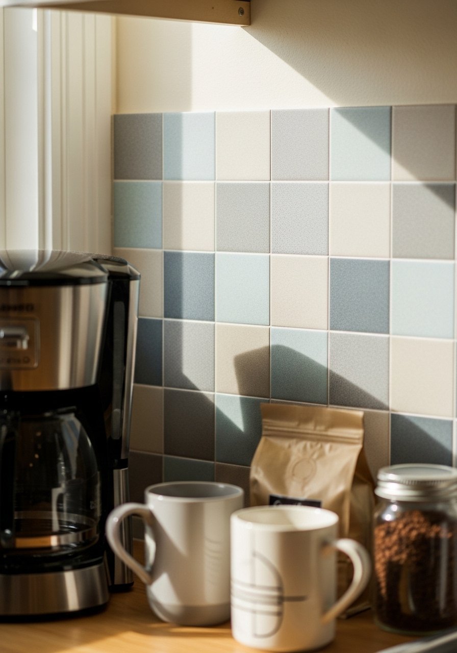 Peel-and-stick tile stickers mimic tile behind coffee stations or sinks—great for renters who want a backsplash. I cut them to size and seal edges lightly for longevity. They’re inexpensive and replaceable when tastes change. I used them in a rental and they made the small kitchen feel finished for about $25.
