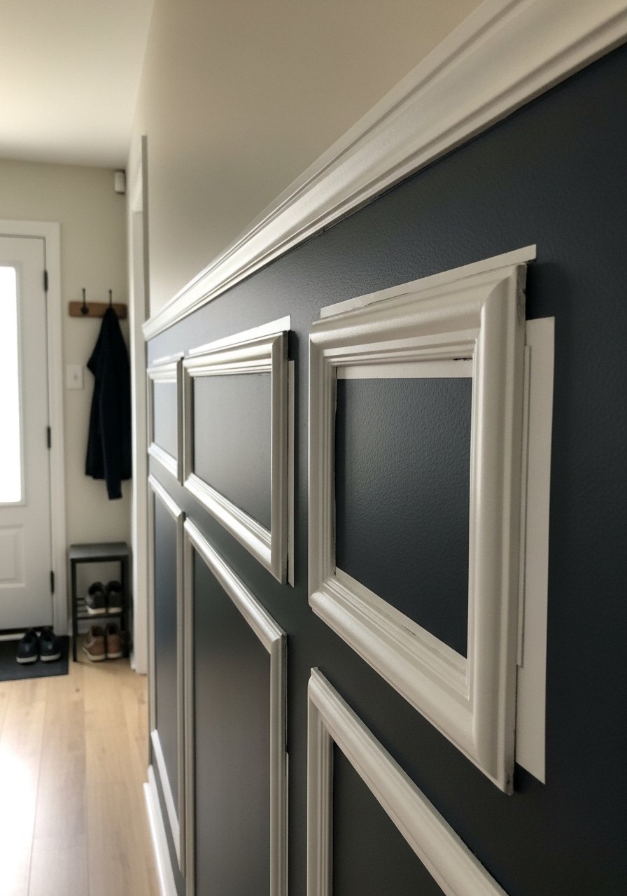 Removable molding strips create paneling depth—apply strips in rectangles, paint the whole wall in two tones, and remove strips when you move. I’ve done this for a refined look that costs under $100 for an accent wall. Use smooth surfaces for best adhesion and choose peel-off-friendly molding products.