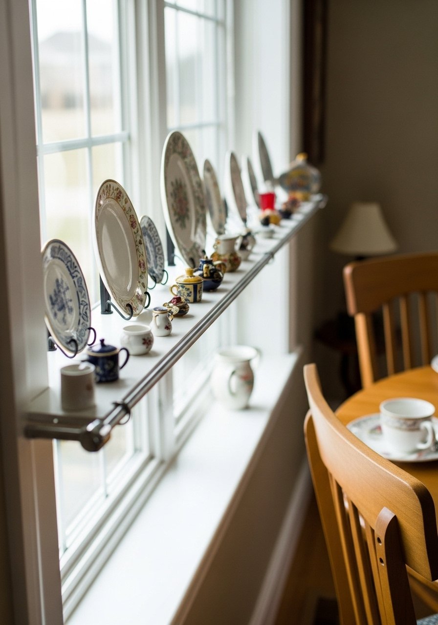A tension rod plate rail gives display space for small plates and keeps the wall free of holes. Secure plates with silicone bumpers and set the rod within trim for stability. I installed one in an alcove and it offered charm and flexibility without hardware.