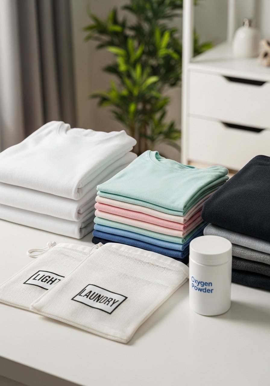 Brighten with oxygen: Keep oxygen-bleach-powder for monthly maintenance so whites age better.