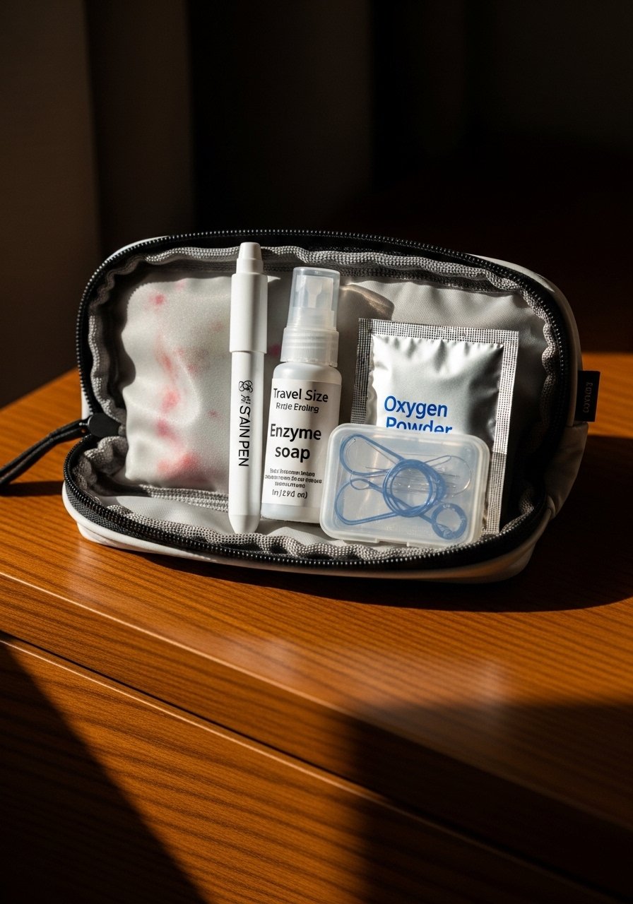 I travel with a small kit: stain-remover-pen, a travel soap bar, and a couple safety pins. Between delayed luggage and accidental spills, I’ve used it more than once. It’s compact and prevents outfit disasters at critical moments. Save yourself the embarrassment at a meeting or dinner table.
