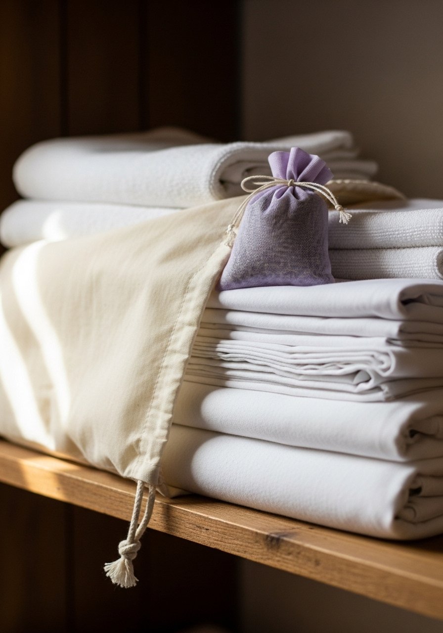 I store seasonal whites in cotton bags with silica packs, not plastic bins. Plastic traps moisture and invites yellowing over time. After switching storage methods I found linens stay fresher long term and need less heavy cleaning when brought back into rotation. A little airflow goes a long way.